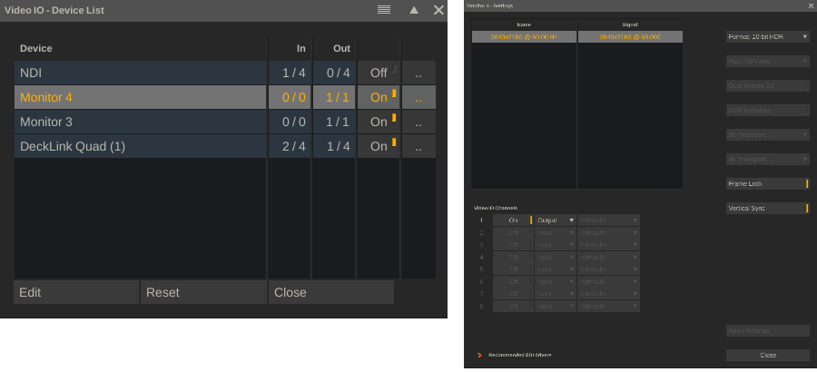 For GPU display outputs there is an additional HDR pipeline available where the local Operating System / Graphics drivers generate the final signal. To enable this pipeline, the display’s colorspace and the VideoIO format need to be set to specific values. The implementation differs a bit for Windows and MacOS.